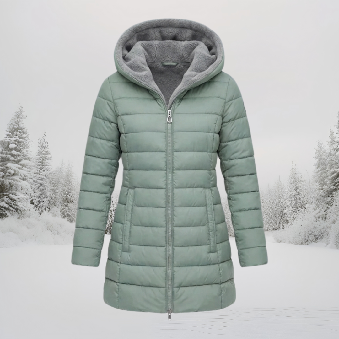 Il cappotto invernale Lucia ti tiene al caldo senza aggiungere volume. La morbida fodera in pile e il design trapuntato ti garantiscono un calore eccezionale nelle giornate fredde. La vita aderente e il taglio ad A valorizzano la tua silhouette, scivolando lungo il busto senza stringere. Il tessuto esterno idrorepellente ti protegge dalle intemperie impreviste. Rimani al caldo e sfoggia un look raffinato per tutto l'inverno.
